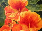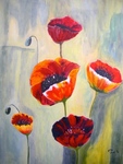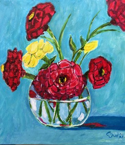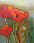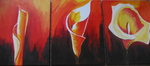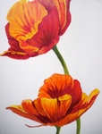 2007Rode en witte tulp horen bij elkaar, allebei op canvasboard